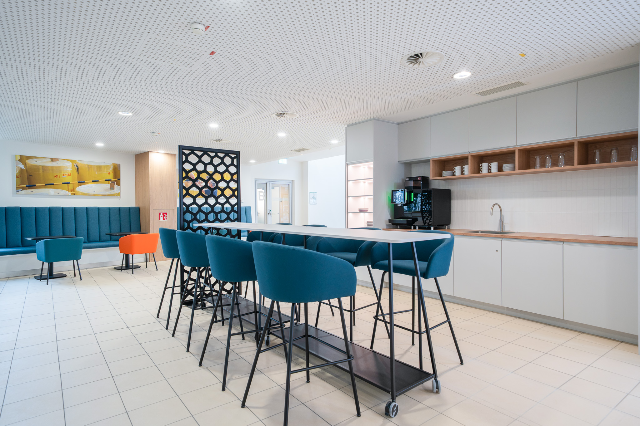 Durch die reibungslose Zusammenarbeit aller Beteiligten – vom Planungsteam bis zu den Umsetzungspartnern – konnte das Ergebnis pünktlich zum Standortfest präsentiert werden. Aus einer klassischen und funktionalen Büroumgebung wurde ein Ort mit Charakter, Identität und Gemeinschaftsgefühl, der die Werte von GNS – Exzellenz, Miteinander und Nachhaltigkeit – räumlich erlebbar macht.